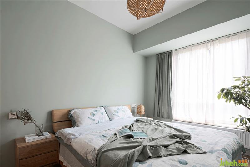 在父母房中,考慮父母年紀(jì)較大,墻面、窗簾、被套我們都以綠豆灰為基調(diào),搭配著窗紗和床藝用品的棉麻白、床頭柜的原木色,營(yíng)造出舒適、健康又賞心悅目、富有治愈氣息的休憩環(huán)境,更有益于睡眠。