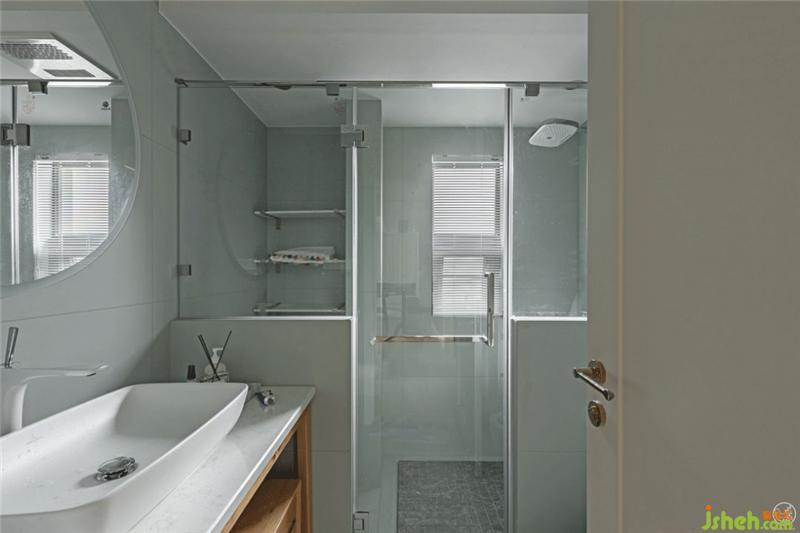 衛(wèi)生間的格局相對緊湊,通透、清爽的基調(diào)、清晰的布局能很好的弱化這一點。室內(nèi)設(shè)計師