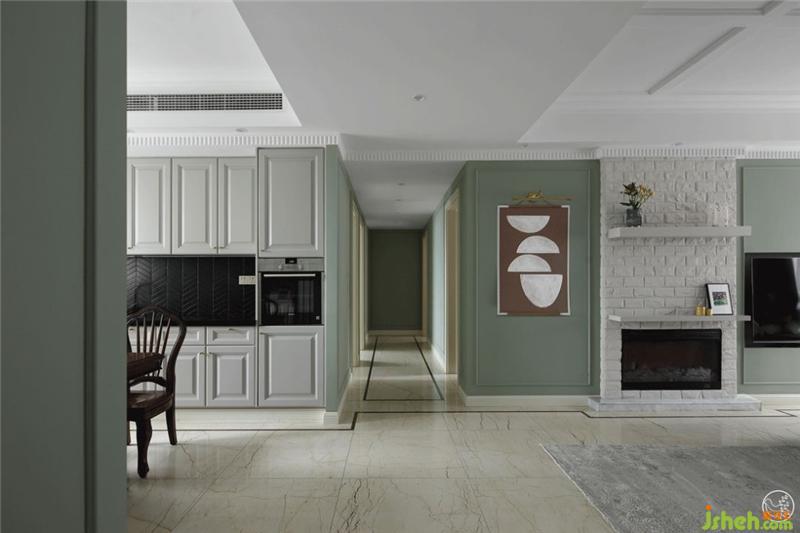 客廳兩側(cè)以同色系開放式壁柜與壁爐相對呼應(yīng)。兼顧收納與展示功能的同時,也能為Joan一家營造出生活的儀式感。室內(nèi)設(shè)計師
