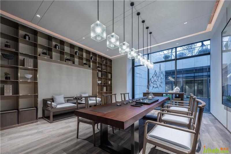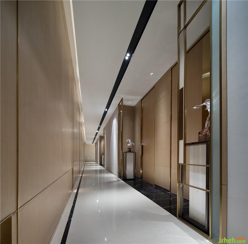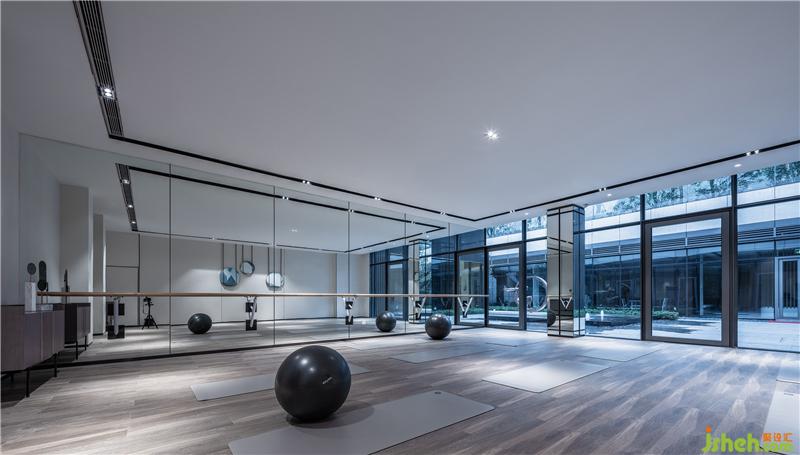 以大廳為原點,沿兩個下沉庭院南北兩側(cè)延伸出去的四個側(cè)翼,自然的圍繞庭院形成室內(nèi)泳池、健身房、室內(nèi)高爾夫練習(xí)場、茶室、棋牌室、兒童活動區(qū)、書畫室、私人音樂教室等功能性空間。會所設(shè)計