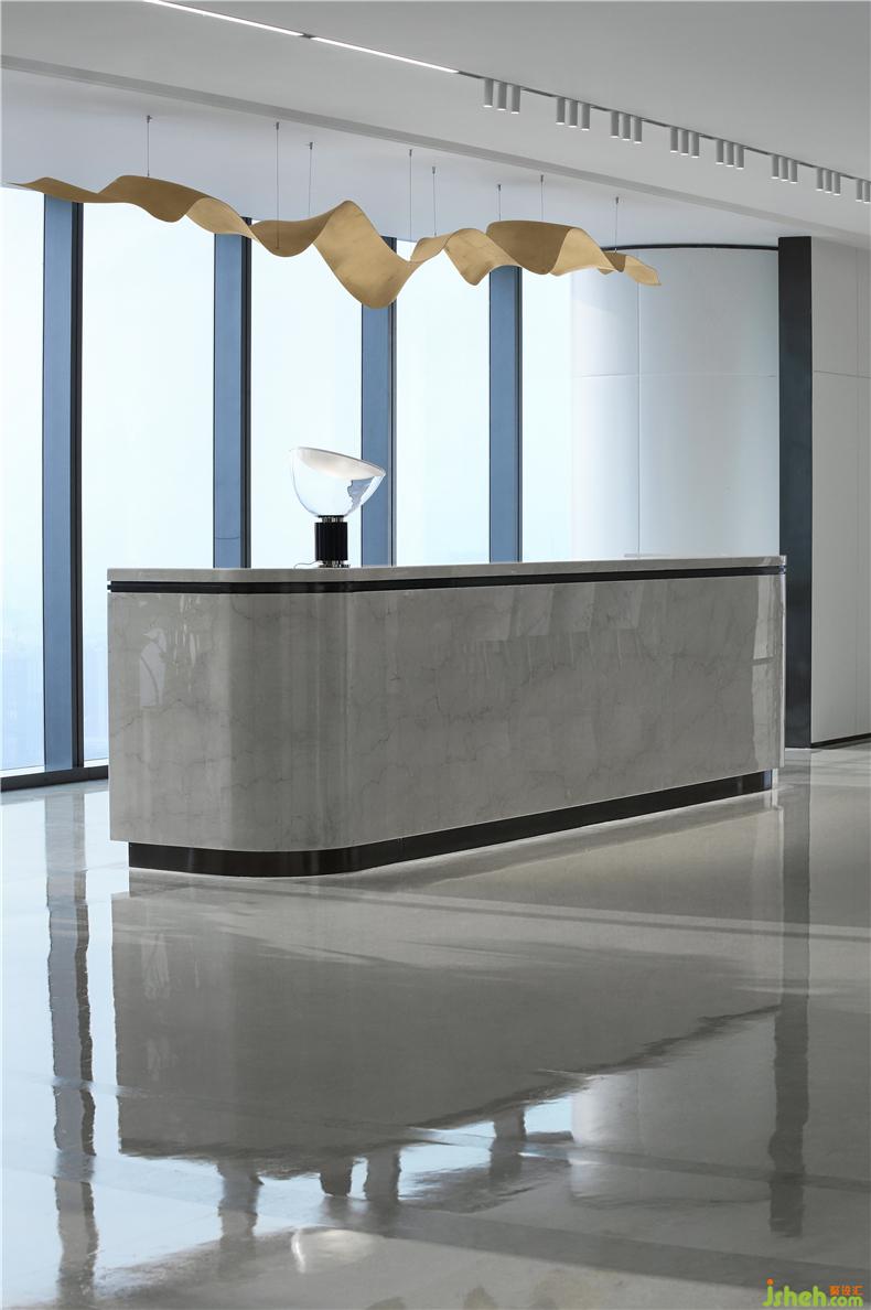 在空間布局中,功能分區(qū)與動(dòng)線設(shè)計(jì)貼合辦公需求,力求兼具美觀性與實(shí)用性。辦公室設(shè)計(jì)行云流水的動(dòng)線取代建筑原本的方正格局,展現(xiàn)出朗聯(lián)對(duì)場(chǎng)景營(yíng)造的“持之以新”。與此同時(shí),接待臺(tái)上空的藝術(shù)裝置,以連綿起伏的形態(tài),與蜿蜒的動(dòng)線設(shè)置構(gòu)成呼應(yīng)