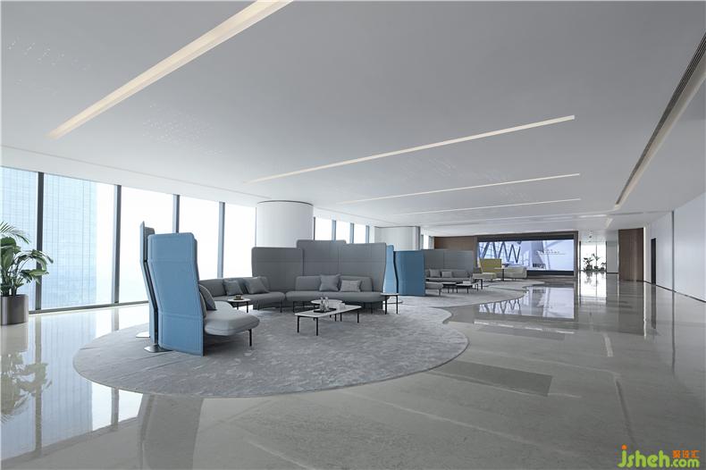 圍合凳幾、大廳中央的高靠背座椅、環(huán)形沙發(fā),適宜私下交談或雞尾酒會(huì),辦公室設(shè)計(jì)在城市美景環(huán)繞下,構(gòu)建起自在舒適的辦公空間環(huán)境