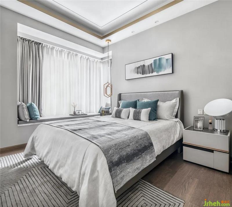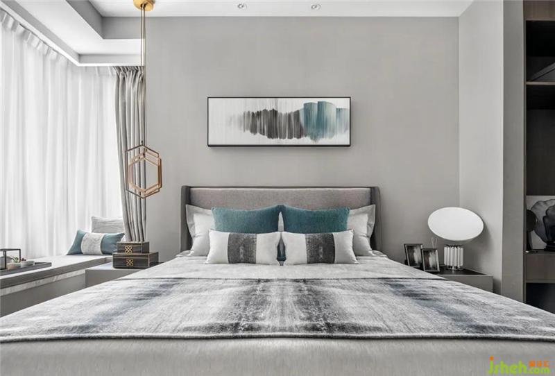 主臥墻面以中性灰為基調(diào),呈現(xiàn)簡單而純粹的空間感。銅色的裝飾,使內(nèi)部空間簡約不失時尚感。抽象的藝術(shù)掛畫,和床件的搭配分外和諧,精致感油然而生,彰顯出壹種對精致生活的美好向往,隨身處喧囂城市,卻能擁有片刻寧靜。