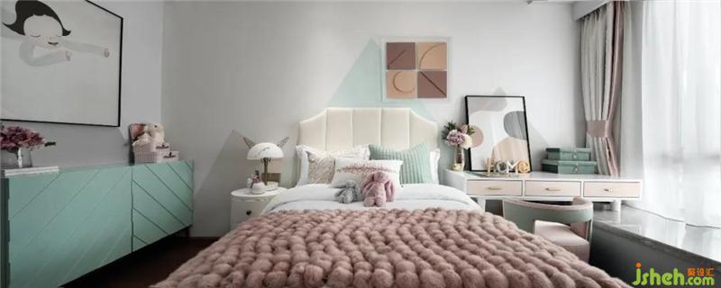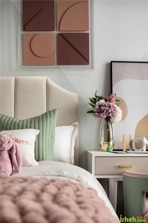 兒童房意在打造女孩子的粉色王國,用水綠色點(diǎn)亮空間體現(xiàn)了孩童活潑個(gè)性的特質(zhì),選用藝術(shù)家奈良美智的作品為空間增添十足玩味,在設(shè)計(jì)上實(shí)現(xiàn)空間體驗(yàn)最大化,營造出輕松愉悅的氛圍。利用飄窗位置延伸書桌功能,增加空間的實(shí)用性。
