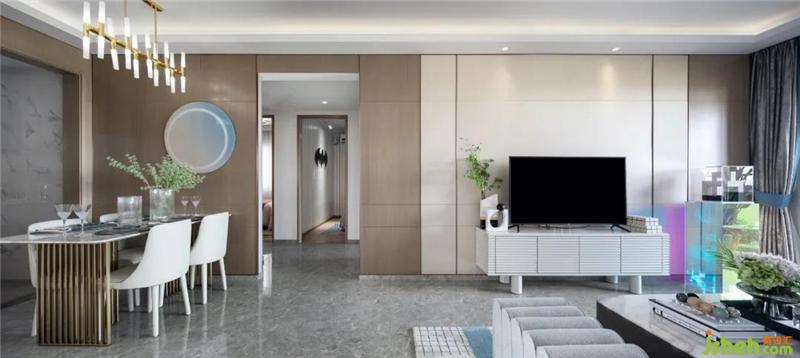 莫蘭迪色系的高級灰色調(diào)彰顯沉靜的格調(diào),為空間陳設(shè)調(diào)和出足夠氛圍,獨(dú)具藝術(shù)氣息的大型落地裝飾鏡,營造造型,材質(zhì),光線的互動(dòng),提升空間的視覺感與品質(zhì)感。