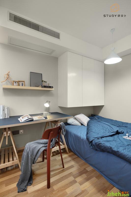 室內(nèi)設(shè)計(jì)師擴(kuò)大了整個(gè)臥室空間,墻壁面是儲(chǔ)物柜,增大了儲(chǔ)物空間。