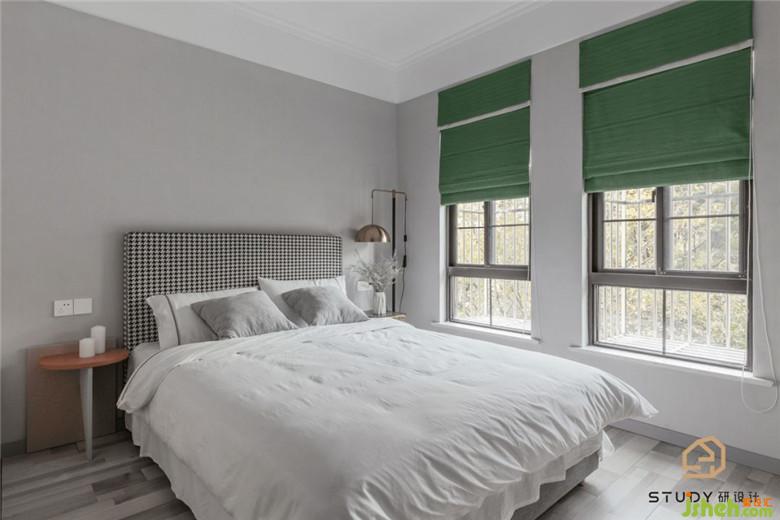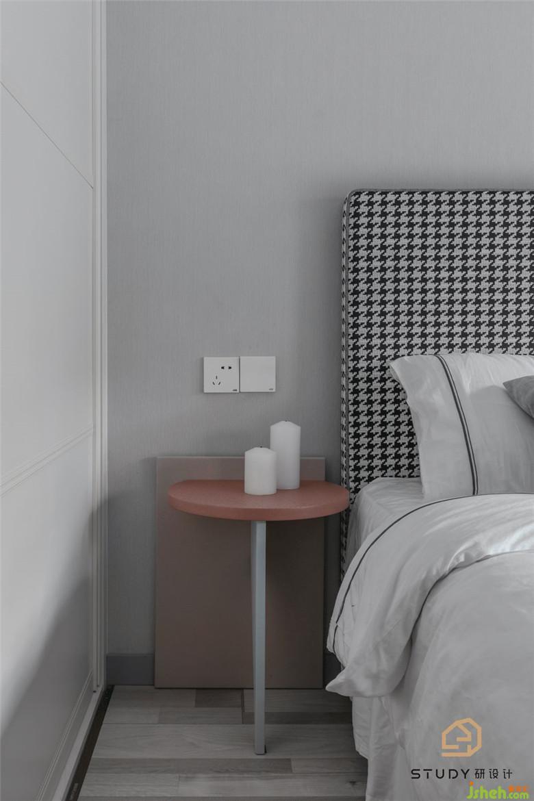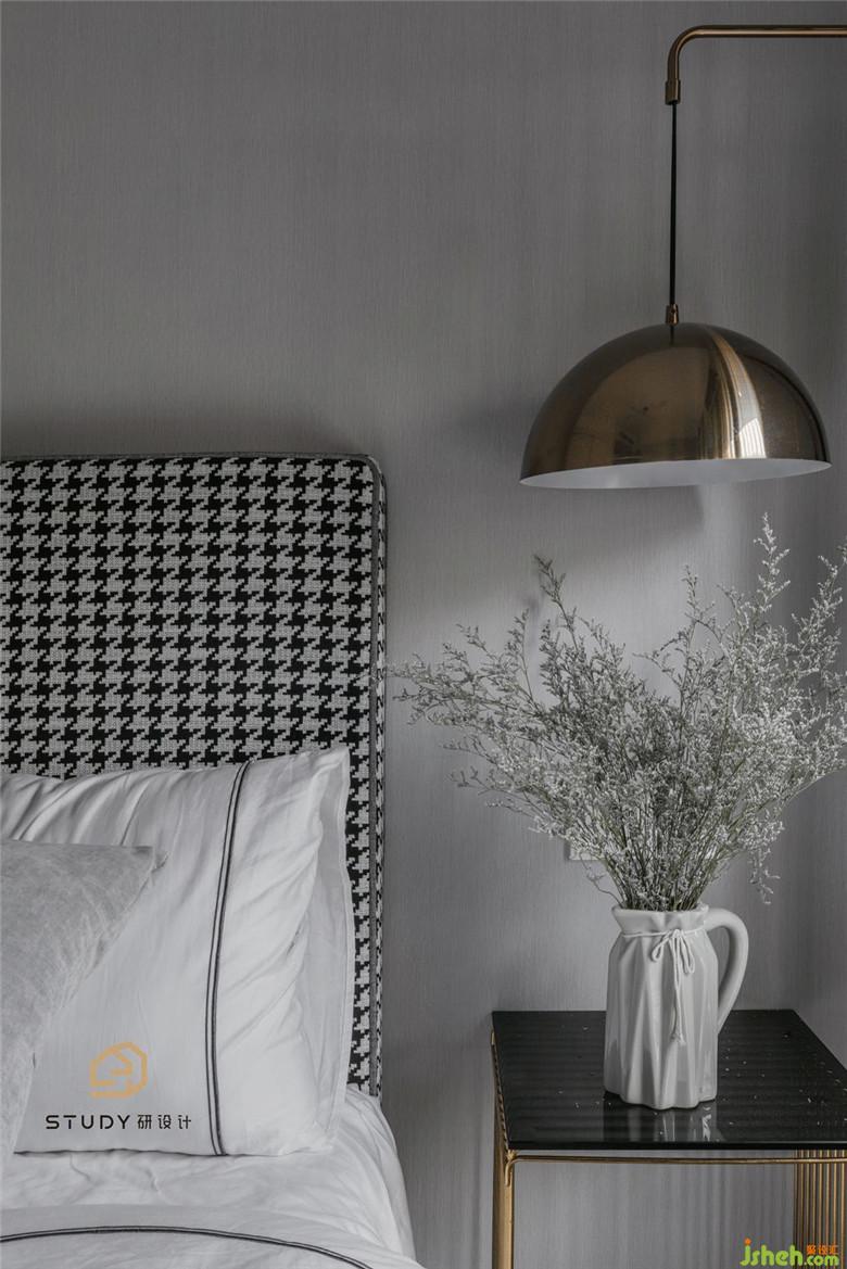 快樂的面料和配飾,激發(fā)了這個緊湊的空間,不變的千鳥格,室內(nèi)設(shè)計師在這個臥室創(chuàng)造一個前衛(wèi)的焦點