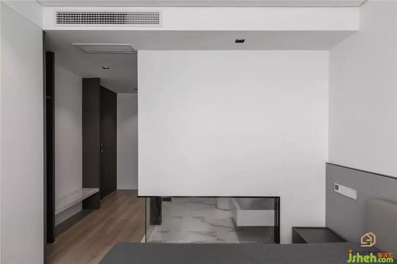 一進(jìn)入主臥便能看到這個(gè)懸空的墻,光隨之浸入,衛(wèi)生間有了通透明亮的機(jī)會(huì)。懸空墻體的出現(xiàn),也使空間變的輕盈起來,無需其它裝飾便充滿美感。