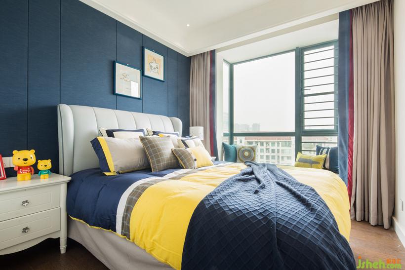 小孩房利用壁布材質(zhì),抹上沉靜的深藍(lán)色。日后小朋友長(zhǎng)大了也可以隨意的變換。