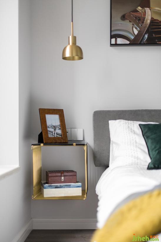 衣柜選用金色把手配合白色柜門黑色細(xì)邊,不搶眼,也獨(dú)有韻味。定制梳妝臺(tái)和衣柜的配合很好吸納斜面的墻體。
