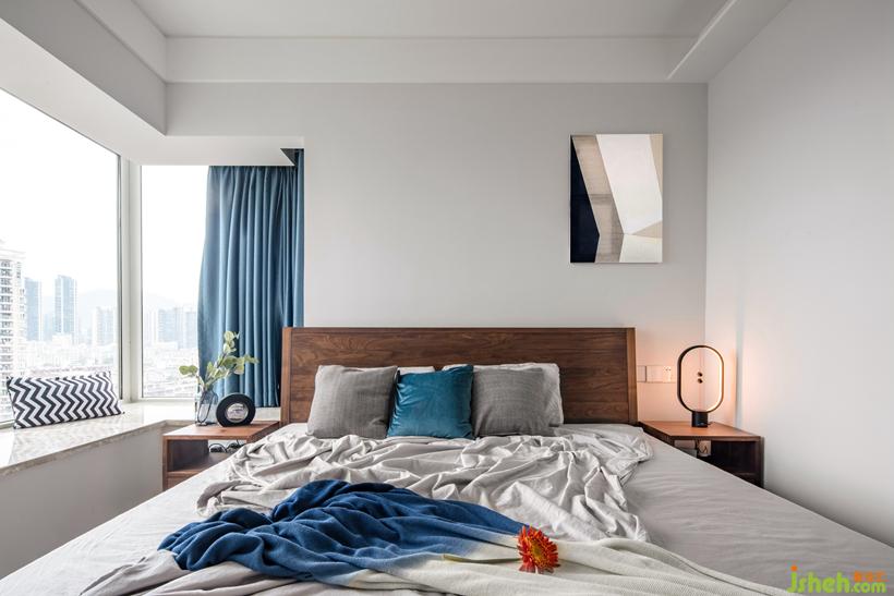 床頭墻面積窄,用不對(duì)稱的掛畫,平衡視覺感。木質(zhì)家具注入休閑與暖意,搭配出自然的觸感。