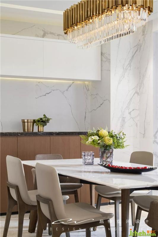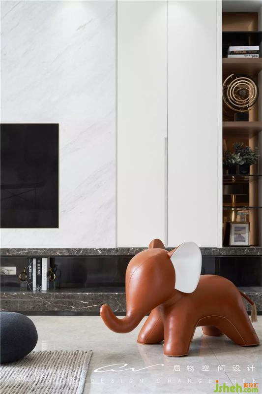 左邊從書房區(qū)走向臥室空間,右邊為玄關(guān)區(qū)。將硬裝的基底做到夠,再用少量的軟裝點綴,無需堆砌就能發(fā)散出大宅的氣魄。裝修設(shè)計