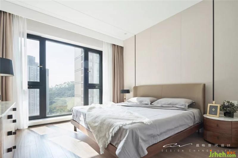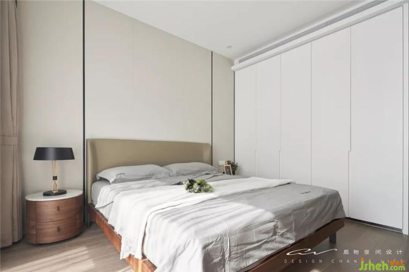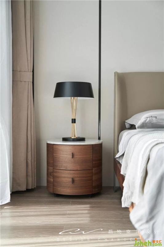 在塊面與線(xiàn)條中,用一點(diǎn)床頭柜的圓活潑主臥空間。