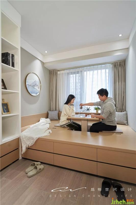 多功能房做榻榻米形式,矮柜與木擋板形成圍合感,閑時(shí)的品茶雅地,也是親友留宿的安心居所。裝修設(shè)計(jì)