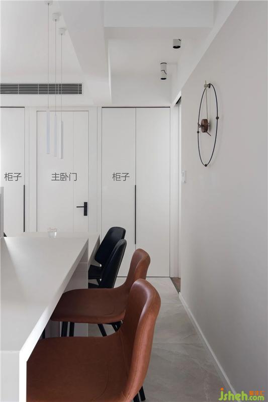 極簡(jiǎn)餐廳燈,掛鐘很低調(diào)。裝修設(shè)計(jì)