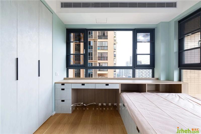 男孩房采光優(yōu)越,性格也向著陽光熱情開朗。造榻榻米,定制家具貼合房間尺寸。裝修設(shè)計