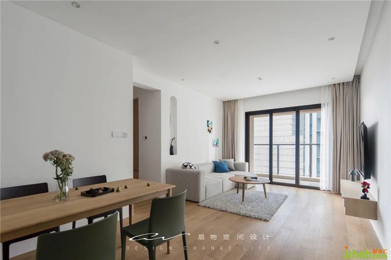 白色墻面散發(fā)寧?kù)o。沙色窗簾、地板氣氛和諧。