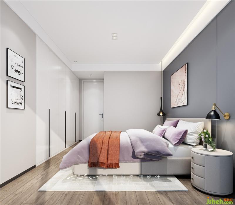 效果圖對比:深灰色的床頭背景體現(xiàn)了王小姐沉穩(wěn)內(nèi)斂的性格,搭配了些許布藝的色彩點綴,讓空間不再單調(diào)。裝修設(shè)計