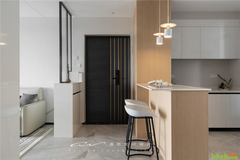 白墻與木質(zhì)家具的搭配,加上偏灰系的湖綠、橙紅撞色的點綴,讓長輩房素顏中不顯單調(diào),活潑中不失溫馨。裝修設(shè)計