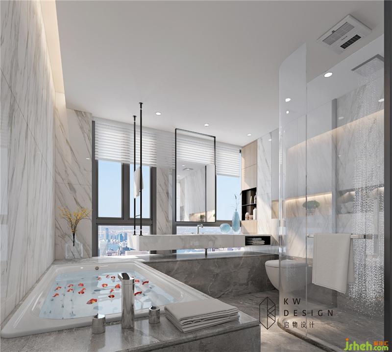 浴缸留有電熱毛巾架位置,確保洗完澡有熱乎干燥的毛巾使用。裝修設(shè)計(jì)