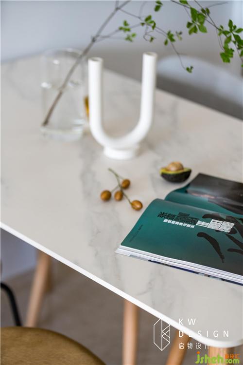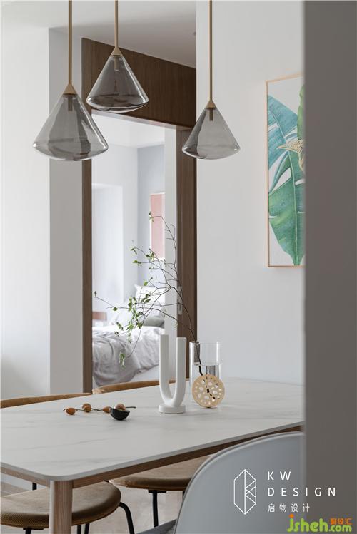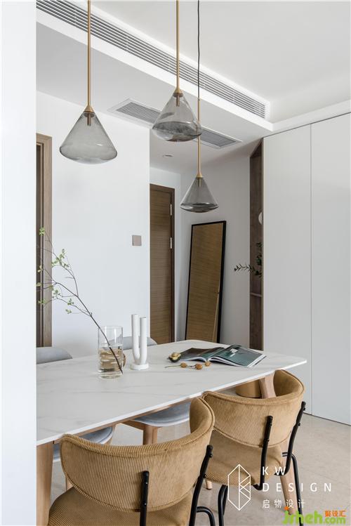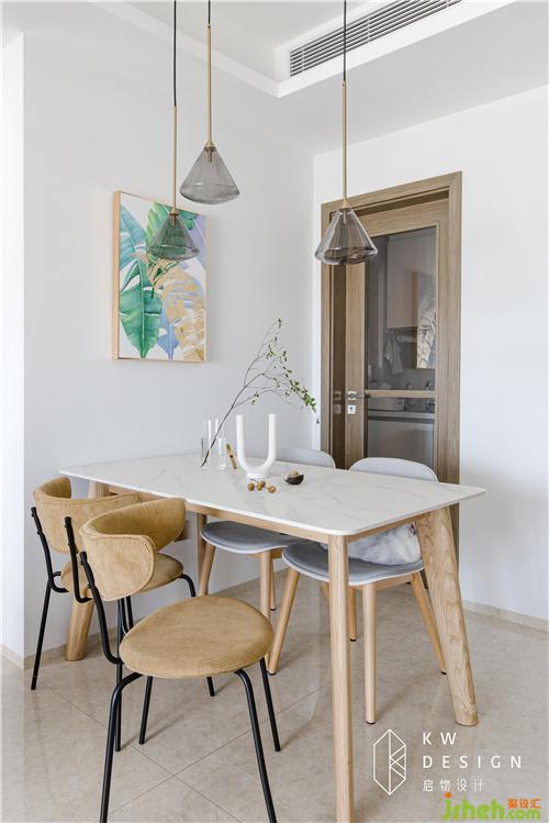 木色溫潤,爵士白清爽,燈芯絨沉靜,黑色跳躍。餐廳的配色和材質(zhì)選用絕了。室內(nèi)設(shè)計師大面積原木色給予視覺的舒適。靜與動、黑與白,方形和圓形的碰撞,是藏在舒適下的靈動。