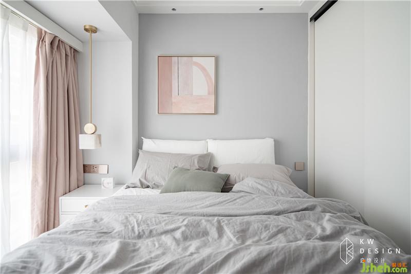 臥室要突出重點(diǎn),那就是一定要好睡。柔軟寬大的床是舊物,人對(duì)熟悉的舊物總是保留情感。重新包邊和配色也能讓它穩(wěn)穩(wěn)融進(jìn)新家?;疑?、白色和粉色的搭配高級(jí)感彌漫。期間再點(diǎn)綴小面積金屬色、香檳色在氣質(zhì)這方面拿捏的妥妥的。