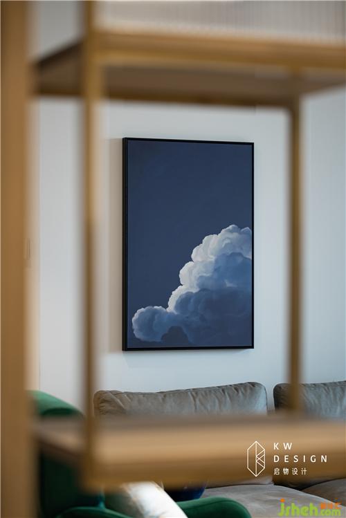 藍(lán)白色同色系掛畫簡(jiǎn)約美觀乃女主人的細(xì)膩之作。