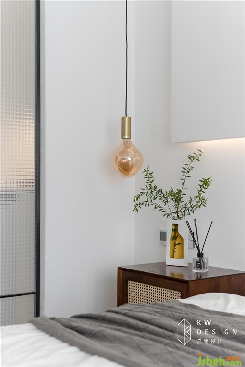 透氣藤編搭配細(xì)膩櫻桃木的中古床頭柜為空間增添一抹雅致韻味。