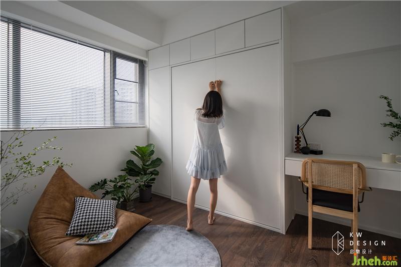 多功能房更多的是做為兩位主人同時(shí)辦公休閑空間,偶爾做客房,采用隱形翻板床的形式解決客臥功能,把更多的空間留給主人根據(jù)不同時(shí)期需求更換功能使用,閑暇時(shí)擺上懶人沙發(fā)和綠植,是專屬兩人互相陪伴的愜意時(shí)光,以后也可以是寶寶活動(dòng)玩耍的空間。