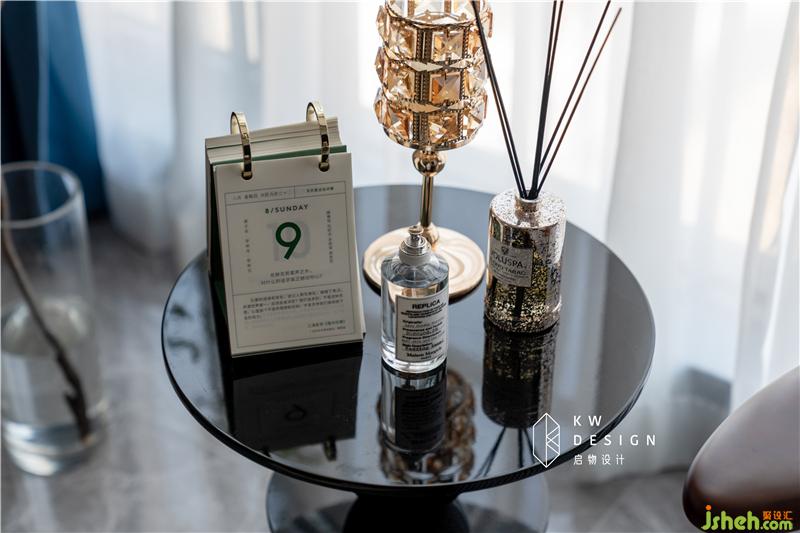 北歐表情的黑色玻璃邊柜是kelly展示她珍藏的各種精致的水晶和陶瓷器具,高腳杯,咖啡杯,碗碟...當(dāng)然還有好看好喝的酒。上層剛好放置頻繁使用的精美小家電。為空間增添一抹 復(fù)古韻味。