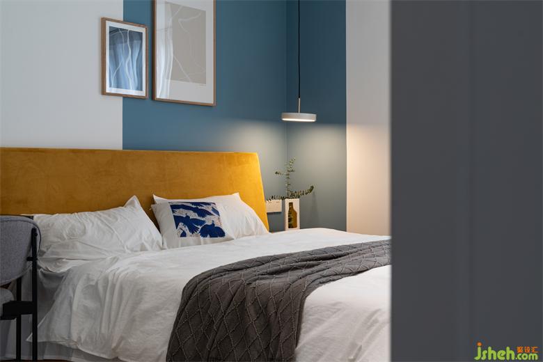 圓形吊燈暈出的清輝撒滿四周,家裝設(shè)計照在藍色墻面如漂浮在海面的月光,夜晚這一角落亮著,靜謐溫馨。