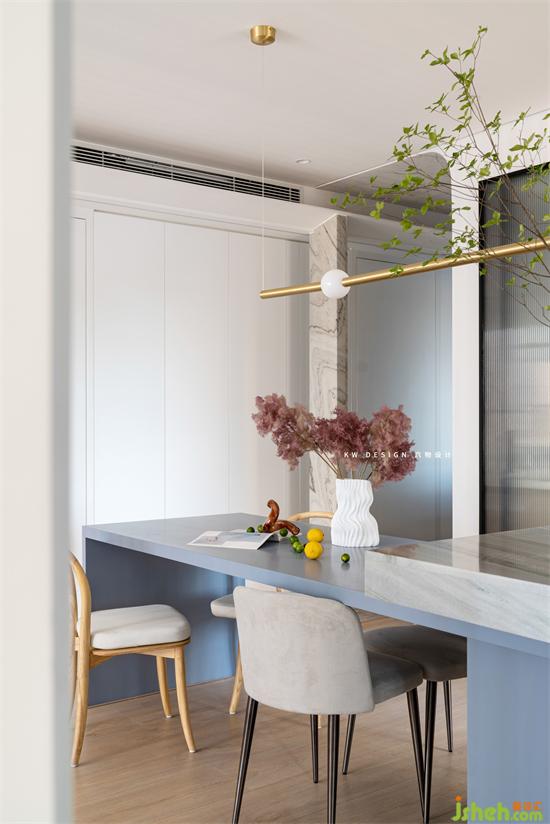 L型廚房除了功能上的完善,整體是極簡的調(diào)性。色調(diào)上也比較明亮清新。