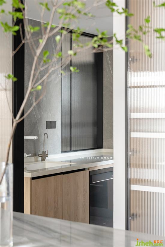 廚房也是半開放式的設(shè)計。