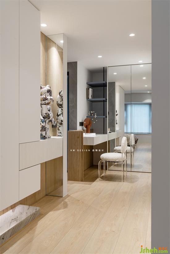 玄關(guān)從很多角度看都很美,拱形,長柱塊體感等從形體上給與美感享受。大理石切面紋路,藝術(shù)漆肌理等從材質(zhì)上給與自然感受。