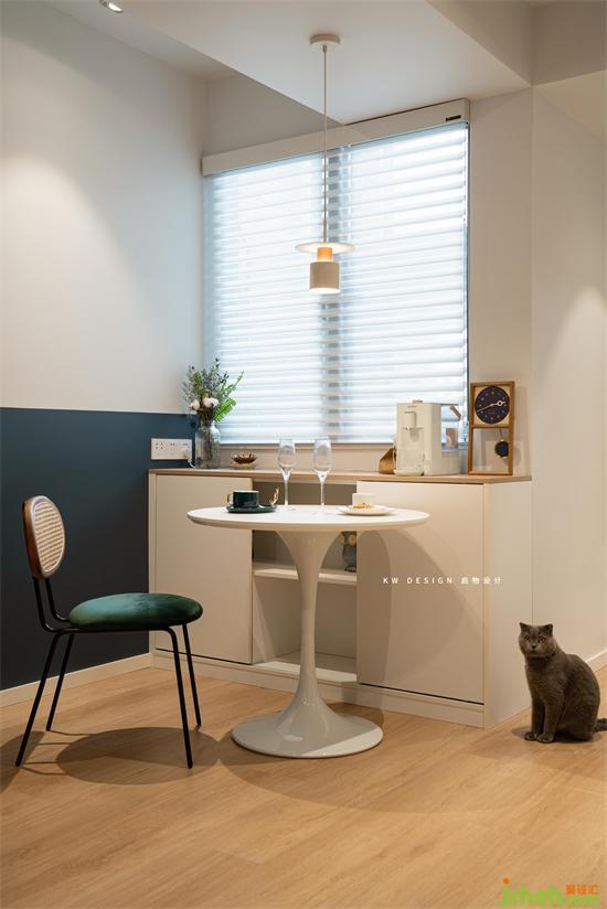 圓桌中心、吊燈中心、橫梁中心規(guī)劃在一個(gè)點(diǎn)上,有秩序的生活總是更舒心的,不是嗎?