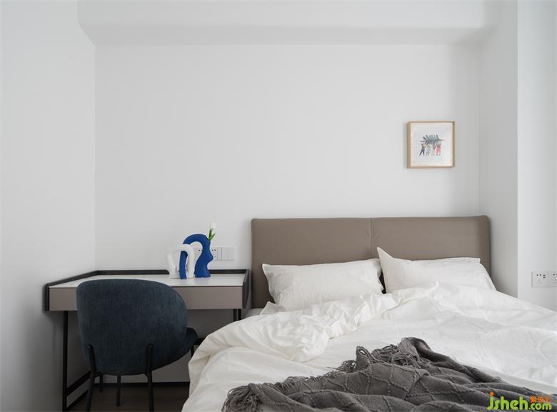 長輩房由沉穩(wěn)灰營造簡約素雅氛圍,深圳豪峰園家裝設(shè)計小幅的人物插畫增添活潑趣味。