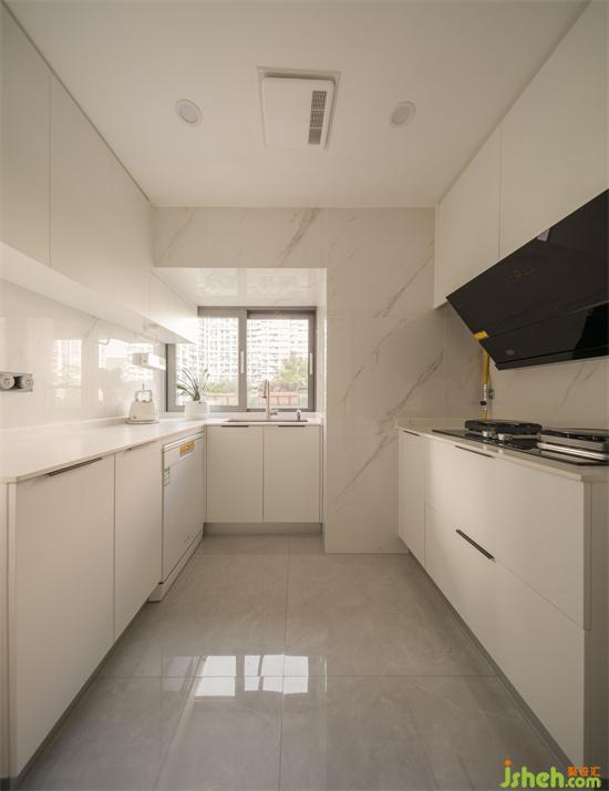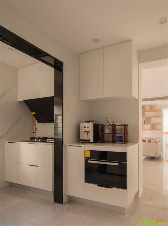 外拓的徑深空間增加了操作平臺,南山恒立心海灣家裝設(shè)計順暢高效的廚房動線提高烹飪效率。