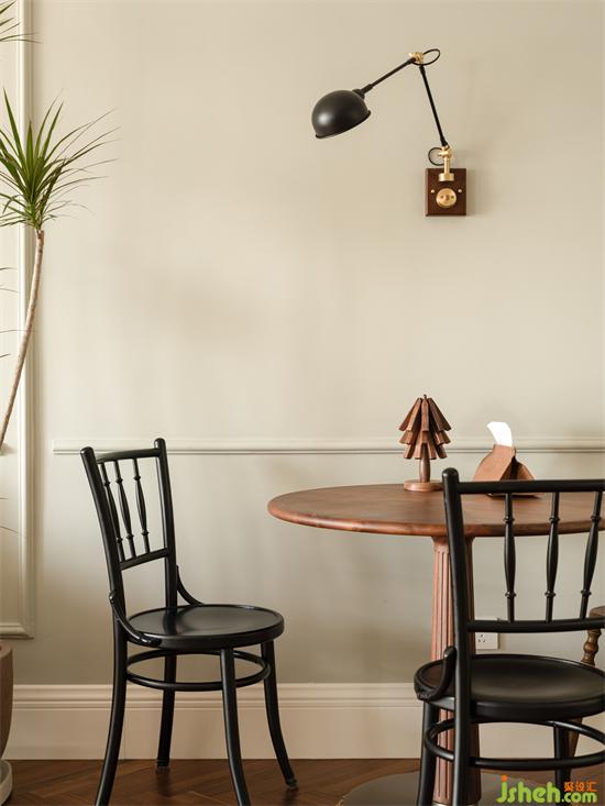 多立克圓桌與黑色索耐特14號椅,融合現(xiàn)代與古典的藝術搭配延續(xù)時尚與懷舊格調(diào),圍合得布置使空間間隔緊湊而有余,滿足日常一家三口或輕食或休閑的多樣化就餐場景。