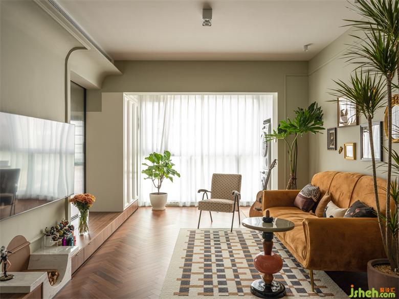 全屋以胡桃木與淺綠色兩種源自森林里的顏色為主色調(diào),碰撞出原始又迷人的復古質(zhì)感,點綴金屬配飾營造輕奢復古的精致浪漫。