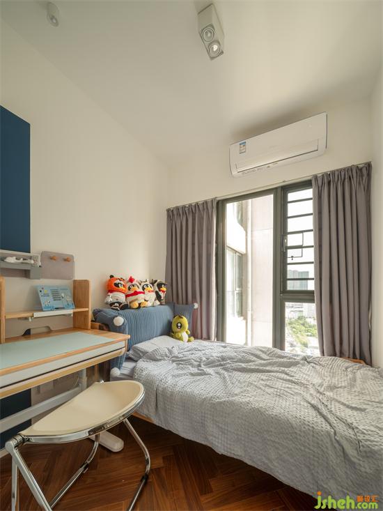 兒童房挨著主臥給到其部分收納空間,剛好靠窗擺放1.2*2m的床,進門兩邊設(shè)置小朋友的學(xué)習(xí)區(qū)和收納區(qū)。