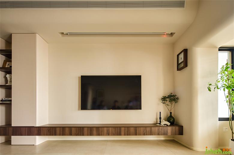 小婉子在需要的居住功能表里特別強(qiáng)調(diào)需要充分但不壓抑的收納,所以在兼具視聽和娛樂功能的電視墻面上并沒做太復(fù)雜的設(shè)計(jì),瀚海東岸家裝設(shè)計(jì)懸挑抽屜收納休閑空間的物品,半高的平臺(tái)位置還可做展示臺(tái),投影儀與電視機(jī)同時(shí)滿足多樣的娛樂需求,提升居住幸福感。