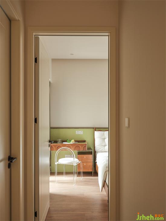 原本主臥進(jìn)門口擺著書桌,床頭對著窗戶靠墻擺放只能兩面下床,空間急促又混亂,經(jīng)過格局優(yōu)化機(jī)能整合,滿足更多功能需求的同時(shí)好看好用好收拾。
