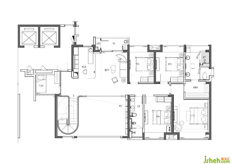 優(yōu)雅的弧線和質(zhì)感十足的材質(zhì)佛山現(xiàn)代復式設計