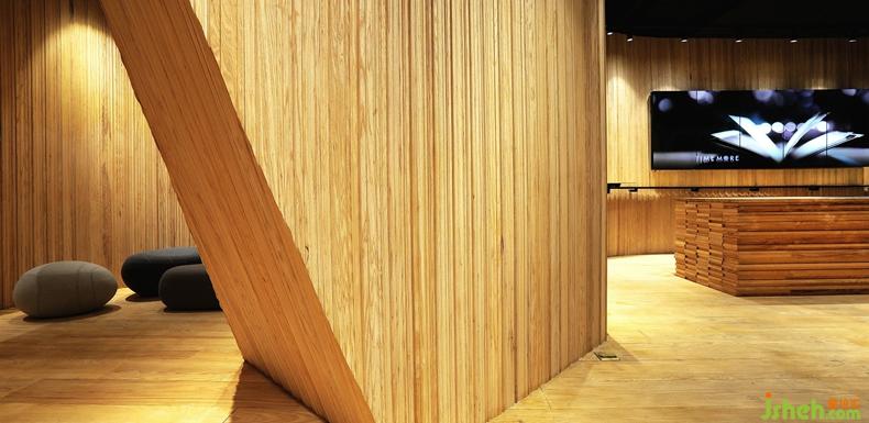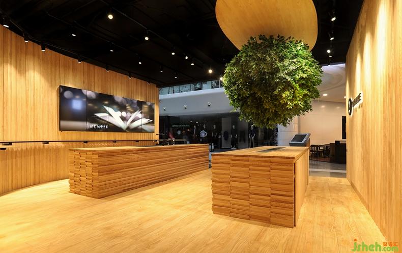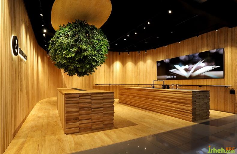 我們把這家店理解成一個(gè)關(guān)于“時(shí)間”的世界??Х榷故怯猩?,一杯咖啡的制作,研磨、萃取及每一個(gè)步驟都需要耐心和專注。這里也是一個(gè)安靜的世界,時(shí)間在這里靜靜的流淌,這個(gè)世界的組成要素里主要是木頭,時(shí)間凝結(jié)成的生命。一道金屬弧形展架在右側(cè)墻面順勢(shì)劃過,空間始終以二元方式展開,動(dòng)與靜、剛與柔、內(nèi)與外、正與反。這樣讓整個(gè)空間蘊(yùn)含某種張力。