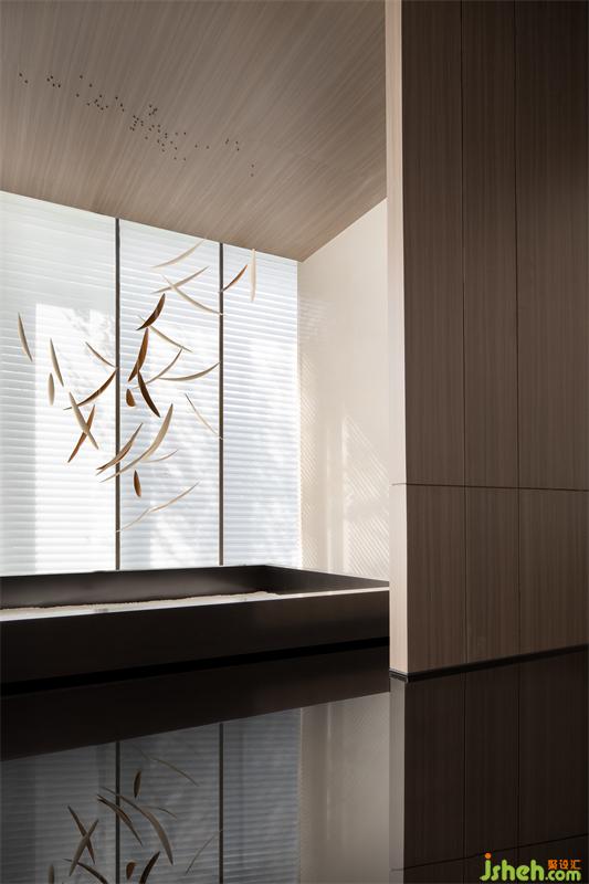 整個(gè)售樓處設(shè)計(jì)以“致敬傳承,邂逅荊楚詩(shī)意生活”為主題,發(fā)現(xiàn)和探索武漢地區(qū)的獨(dú)特屬性,嘗試從城市歷史脈絡(luò)出發(fā),提煉茶文化、書(shū)院文化、古樂(lè)文化及漢繡文化等人文特殊符號(hào),通過(guò)不斷的深化演變,將建筑與室內(nèi)、現(xiàn)代與東方拆解再重組,淬煉城市山水印象,融合荊楚人文美學(xué),在登堂入室與移步異景的手法之下,打造當(dāng)代生活與傳統(tǒng)文化相結(jié)合的未來(lái)新居住方式。