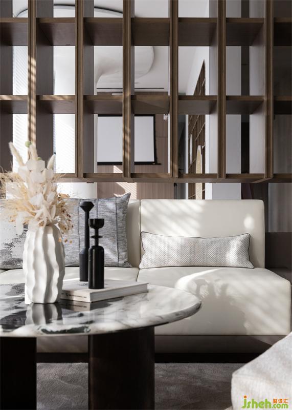 同一空間中,銷售中心設(shè)計(jì)面料、木藝、金屬及石材等不同材料之間的碰撞,簡(jiǎn)明而克制。