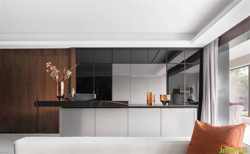 把酒言歡,心向往之。客廳與開放水吧區(qū),讓人在其中形成一種天然的開放與親近狀態(tài)。在天然的場(chǎng)景中,樣板間設(shè)計(jì)現(xiàn)代的筆觸在空間呈現(xiàn)中富余的雅趣,一杯美酒,三倆好友,擁舒心的時(shí)光入懷,一切美好的共情仿佛都在此定格。