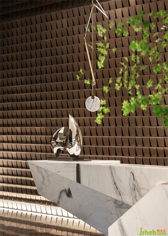 接待前廳大面積木格柵一直延續(xù)到洽談區(qū)水吧及簽約室,同音共律實(shí)現(xiàn)各種空間的奇妙碰撞,同時(shí)也創(chuàng)造了空間邏輯的協(xié)調(diào)性。