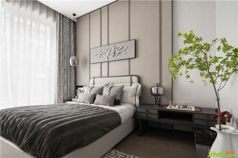 空間承載的是一種實(shí)實(shí)在在的生活。老人房延續(xù)摩登東方的設(shè)計(jì)理念,樣板房設(shè)計(jì)整體采用弧形細(xì)節(jié)收口,保證了功能獨(dú)立的同時(shí),又強(qiáng)化了整體延續(xù)性。床頭背景提取東方元素,墻布硬包造型墻體搭配細(xì)膩的床品織物肌理,雅致而內(nèi)蘊(yùn)。