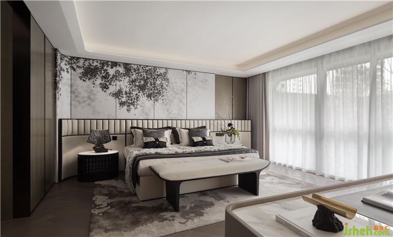 老人房雅奢兼?zhèn)洌尘皦Σ捎么髩K面弧形拼接,樣板間設(shè)計(jì)呈現(xiàn)出多層次的觀感,充分回應(yīng)返璞歸真的訴求,溫暖從容。